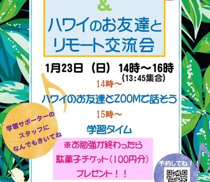 今回はハワイのお友達とリモート交流会しました~ 現地のお友達7名とそれぞれの文化や自己紹介、質問コーナー、ハワイのお友達からはダンスやウクレレ演奏のプレゼント とっても楽しい時間をすごしました そして、後半はみんな集中し...